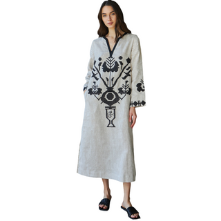White Linen Embroidered Boho Chic Kaftan Dress 'Ophelia'