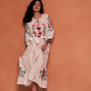 'Ksenya" Linen Embroidered Vyshyvanka Dress in White