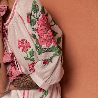 ‘Palermo’ White Linen Embroidered Vyshyvanka Blouse