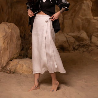 'Rome' Linen Black Maxi Skirt With Side Splits in Black